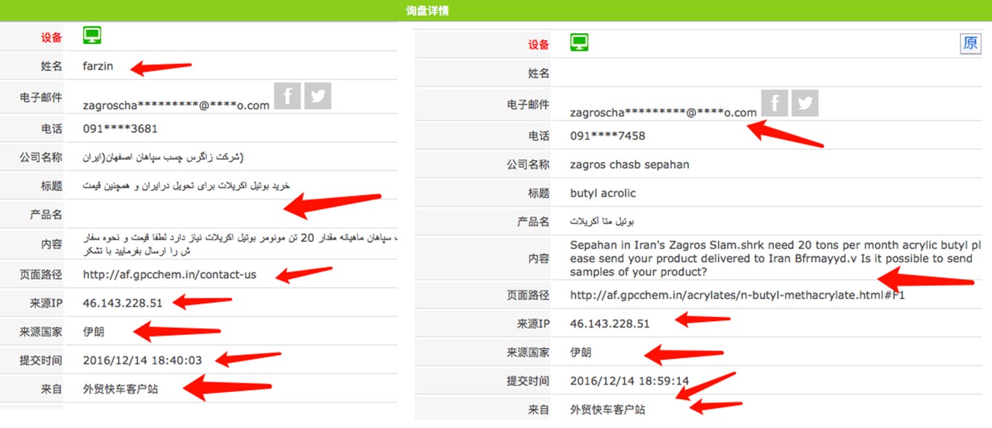 如上圖:客戶首先用當(dāng)?shù)卣Z種谷歌訪問網(wǎng)站,很自然的發(fā)了母語的詢盤,隨后又補(bǔ)發(fā)了英語詢盤